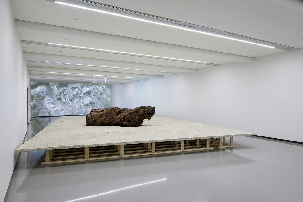 During the installation of the exhibition, I helped construct the paper-crete platform around a breath-taking, fossilised Kauri pine.
